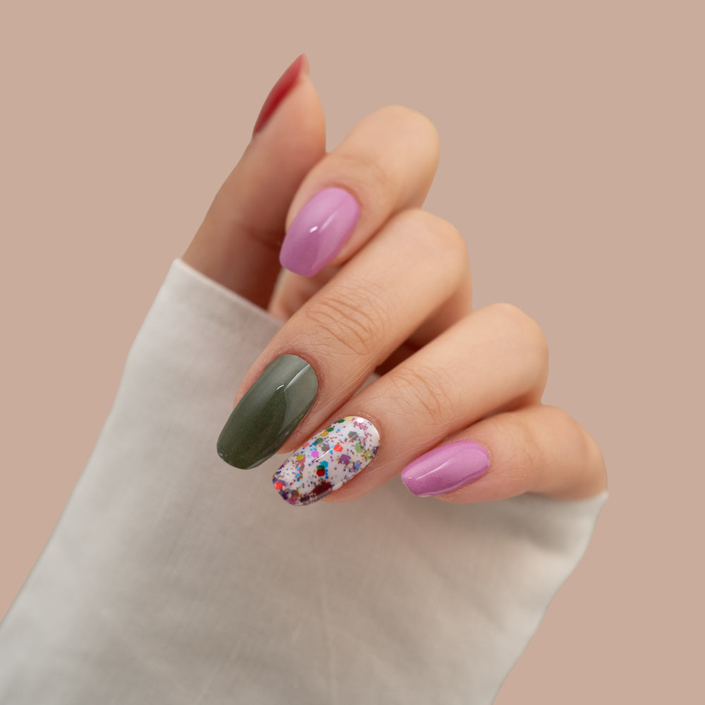 Sustainable on natural nails, acrylic, gel nails, and shellac.
