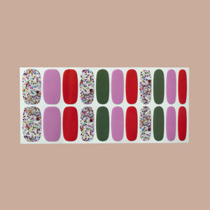 - 22 self-adhesive Double-Ended Nail Polish Wraps in 11 different sizes.